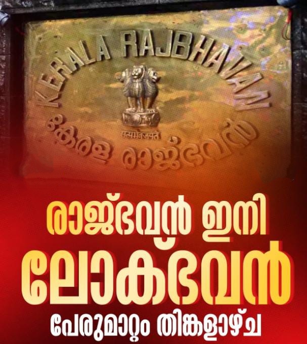 ഗവർണറുടെ ഔദ്യോഗിക വസതിയായ രാജ്ഭവൻ ഇനി മുതൽ ലോക്ഭവൻ; മാറ്റം നാളെ മുതൽ