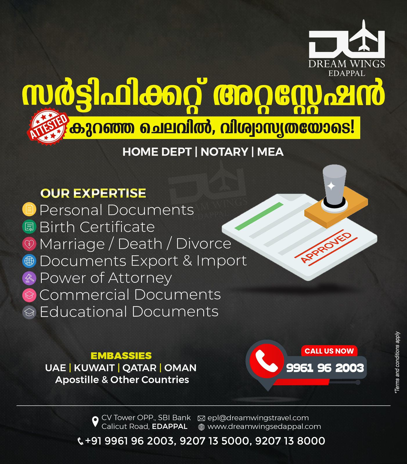 <p>ð DREAM WINGS TRAVELS<br>CV Tower, Opp SBI Bank, Edappal</p>
